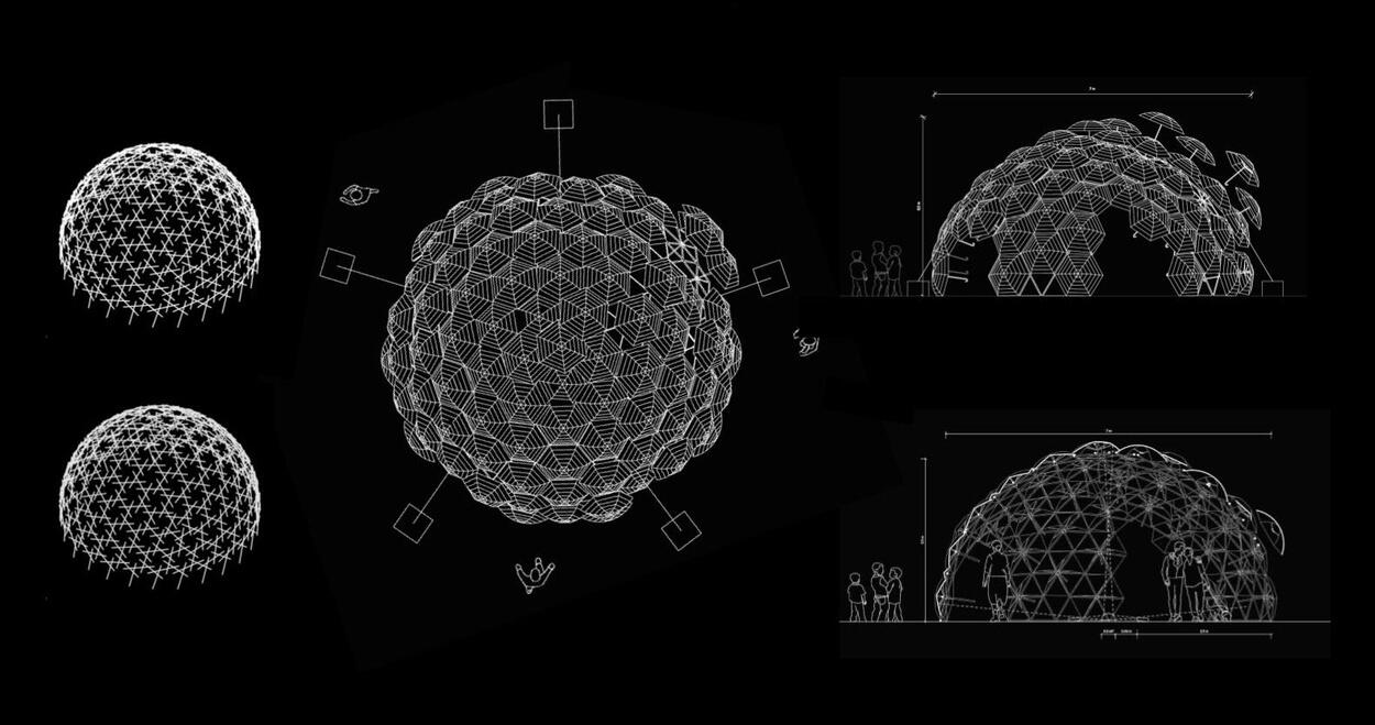 Dande-lier is designed for iLight Marina Bay 2017, an annual light festival initing contributors and installations by artists from all over the world.Umbrellas are held by seven layers of triangular PVC pipe modules, resting on each other to create a reciprocal dome structure. The pipes, commonly used in local construction are held together by galvanized iron pipe clamps and screwed together by a customized thread. The system makes Dande-lier both adaptable and easily deployable.On the inside, the view of the outside world is warped, transporting visitors into an alternate world, with a smart lighting system that responds dynamically to the visitors’ position in the sculpture. during the day the well ventilated dome provides shaded seating areas and respite from the heat.