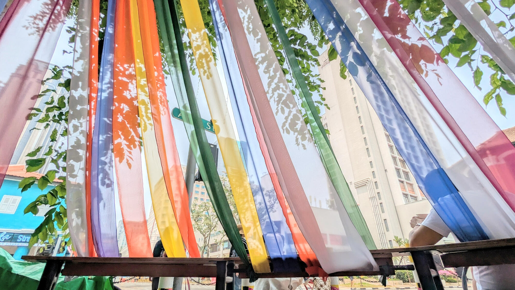 Fabric Forest is an urban installation that envisions to enliven and enhance this leftover pocket of space by transforming it into a vibrant gateway into the Kampong Gelam district, and laying a blank canvas for community adaptations, gatherings and pop-ups.Drawing from the district’s past as a port for pilgrims en route to Mecca, this installation offers a sanctuary for spiritual respite, rejuvenation and reflection. Made up of a euphony of canopies and tiered seatings, the installation weaves together a myriad of grounds for congregation and respite under the majestic shade of the Angsana trees. The forest of fabrics encircling the trees enfold and unveil with the ebb and flow of pedestrian traffic, bringing to fore the textile heritage and charm that continue to define Kampong Gelam today.